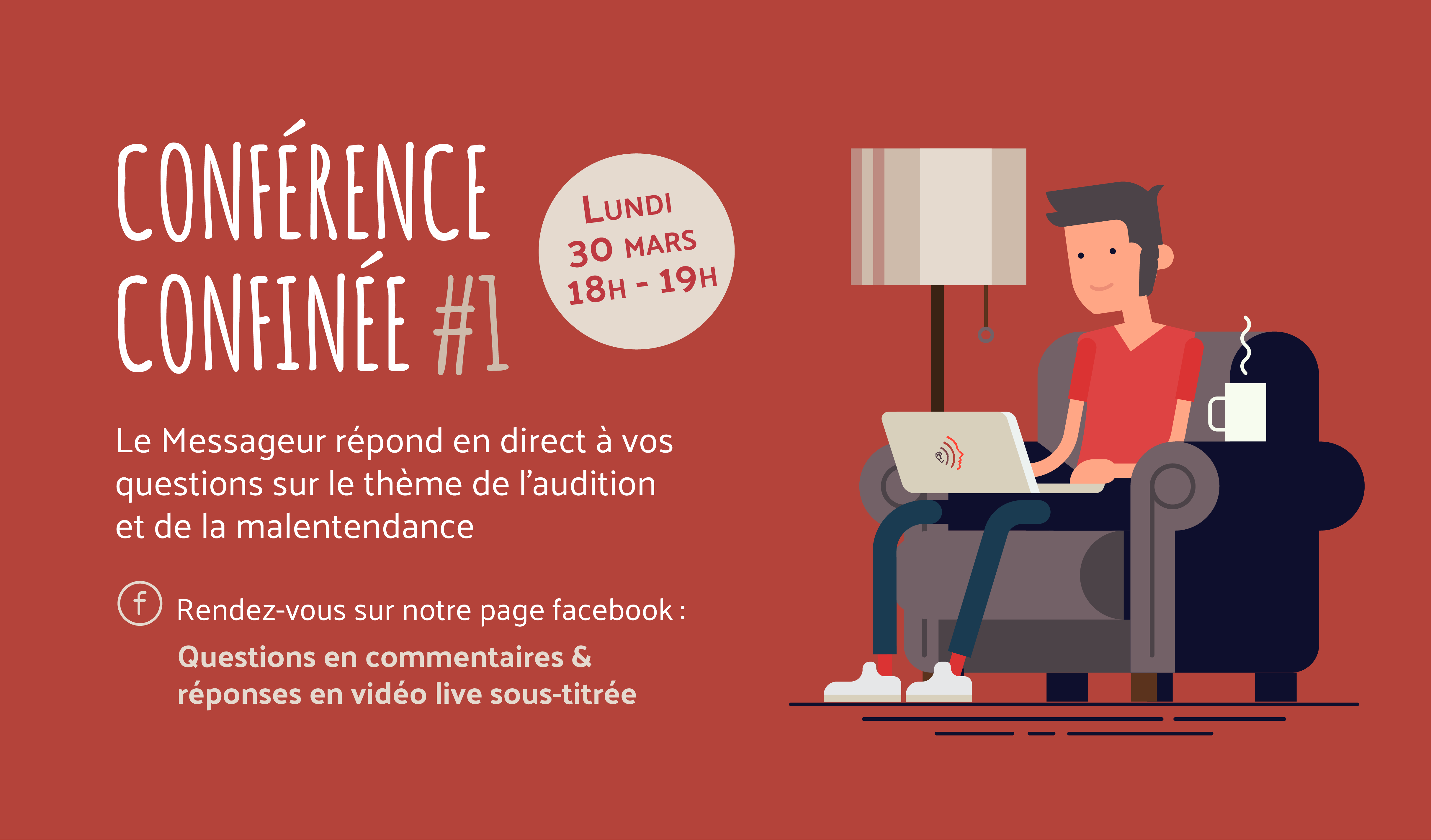 En cette période de confinement, nous restons en lien avec vous et maintenons notre action d’information sur le handicap auditif en expérimentant un nouveau format : les « Conférences confinées » du Messageur, en vidéo en direct sur facebook.