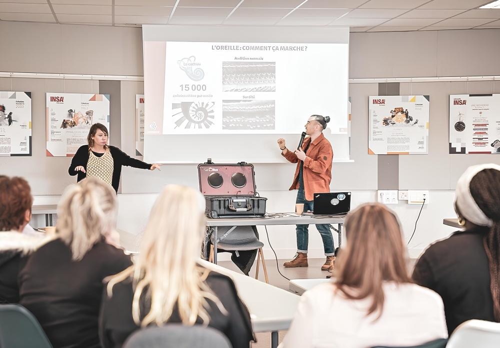 Nous intervenons auprès de vos collaborateurs pour partager autour du sujet du handicap auditif, de ses enjeux et leur donner des clés pour favoriser l’inclusion des personnes sourdes et malentendantes.